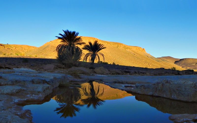 In der ersten zehn Jahren, als ich mit Gruppen in die Wüste ging, schlief ich immer im Freien. Egal, wie kalt oder wie viel Wind es hatte. Ich erinnere mich an viele wunderschöne, aber auch an einige echt harte Nächte aus dieser Zeit. Auf den Trekking-Routen hatte ich an den jeweiligen Biwakplätzen meine Lieblings-Schlafplätze. Einer der allerallerschönsten: In der Steinwüste von Marokko oberhalb einer Minioase, auf einem Steinhügel im spitzen Winkel des Zusammenflusses zweier kleiner Täler.
