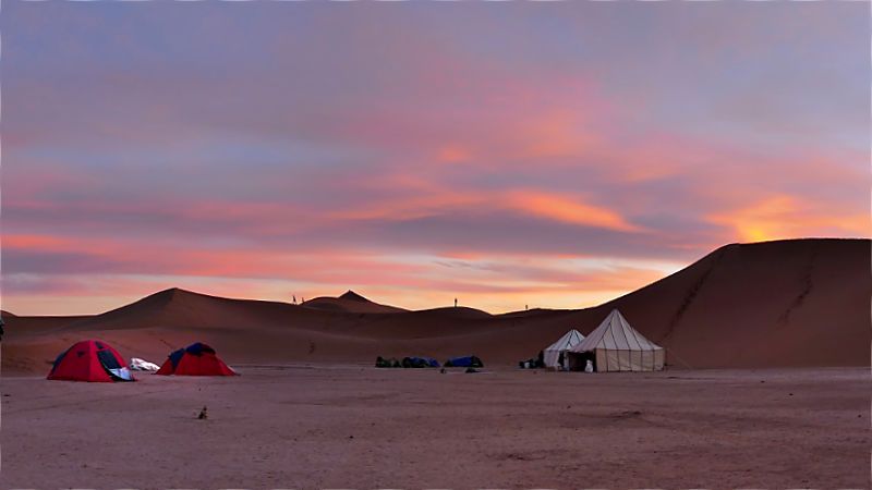 Im Jebel Sahro wurden Felsplateaus von Wind und Regen über Jahrtausende zu grandiosen Felspfeilern zersägt. Im zweiten Teil der Reise wandern wir durch in die sanfte Welt des Sandes. Wie sanfte Wellen erstrecken sich vor uns die Dünen, eine nach der anderen.